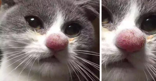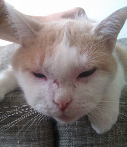 Na fotografii můžete vidět, jak se otoky vyvíjejí u koček kousnutých včelami.