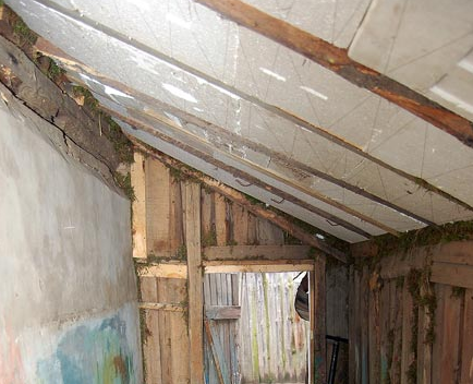Když jsou stěny Omshanik dokončeny, vytvářejí střešní rám. Měl by mírně vyčnívat ze země a je vyroben na svahu. Pro rám se používá tyč nebo kovová trubka. Opláštění se provádí pomocí desky. Zhora je střecha pokryta střešním materiálem. Můžete také položit břidlici. Pro izolaci jsou nahoře házeny rákosí a smrkové větve.