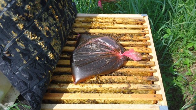 Podzimní krmení včel s cukrovým sirupem v pytlích