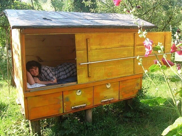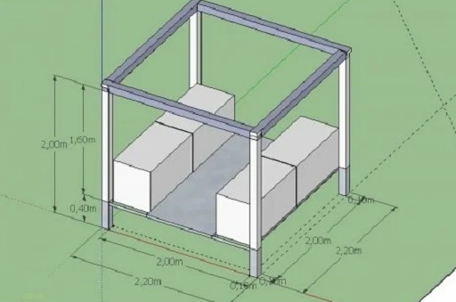 Dům na spaní na včelách si můžete postavit sami. Je lepší zvolit místo pro stavbu poblíž ovocných stromů nebo keřů, daleko od průvanu. Konstrukční výkres apidomiky pro spaní na úlech pro dva bude následující: