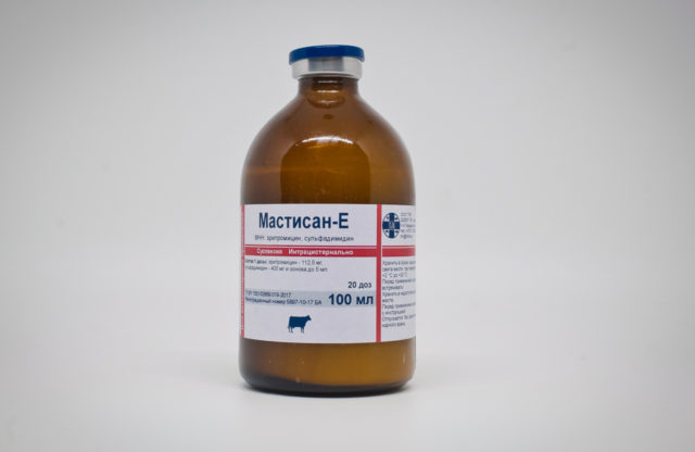 - „Mastiet Forte“. Lék se používá pro injekci do vemene. Zvláštnost akce spočívá ve skutečnosti, že přípravek obsahuje jak antibiotikum, tak složky pro zmírnění zánětu. Dávka je vypočítána veterinářem.