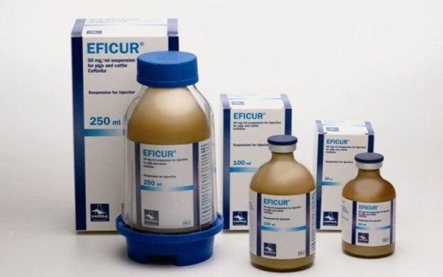 - „Efikur“. Tento léčivý přípravek je určen k subkutánní injekci. Dávka se počítá na základě hmotnosti zvířete - na každých 50 kg hmotnosti je potřeba 1 ml léčiva. Efikur se používá po dobu tří dnů.