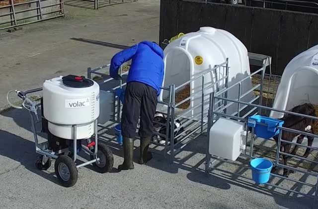 - Krmení telat dávkovací pistolí.