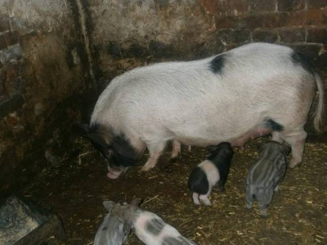 Lze předpokládat, že se jedná o fotografii smíšeného stáda selat různých plemen. Ale fotka strakaté prasnice plemene Karmal s selaty tento předpoklad vyvrací. Piebald nejen prasnice, ale i samotná selata.
