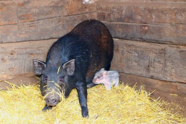 Karmaly pro dospělé lze skutečně chovat venku a poskytnout jim úkryt před dešti. Selata v období intenzivního růstu vyžadují uzavřenou místnost, kde teplota neklesne pod 15 ° C. U dospělých i mladých zvířat se na podlahu položí sláma, ve které se prasata mohou zahřát a zahřát.