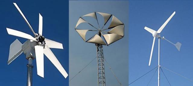 Pro výrobu kinetické energie větru v průmyslovém měřítku se běžně používají větrné turbíny poháněné vrtulí. Modely bubnů a karuselů jsou velké a mají méně efektivní mechanismus.