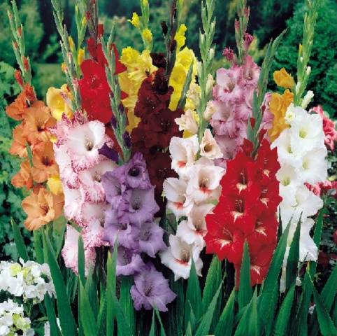 Gladioli patří k trvalkám rodiny duhovky. Je to cibulovitá rostlina se vzpřímeným stonkem a luxusními květinami. Jsou umístěny různými způsoby: