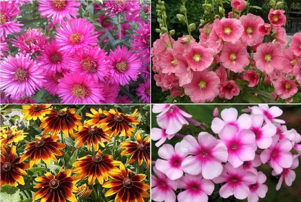 - Anglický aster, sléz, rudbeckia, flox a některé další vysoké květiny lze použít k vytvoření kostry expozice. Můžete je vidět na fotografii: