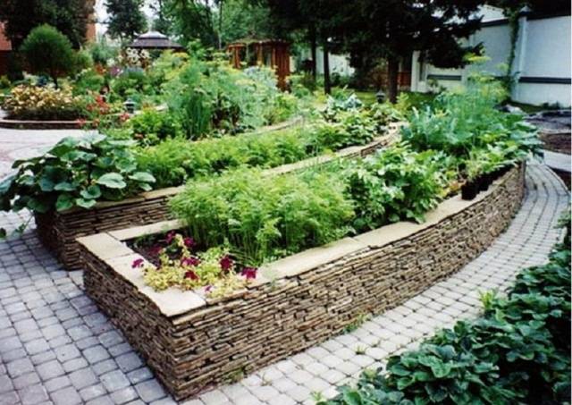 Každý z nich lze spojit pomocí schodů a cest a opěrné zdi slouží zároveň jako výztuž a dekorace.