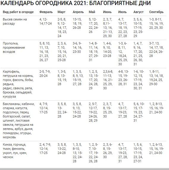 Výsevní kalendář pro rok 2021 pro zahradníky a zahradníky Leningradské oblasti