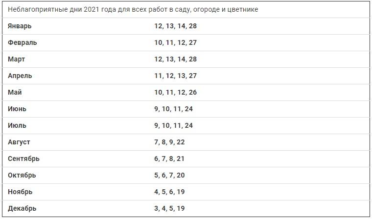 Lunární kalendář zahradníka a zahradníka na rok 2021 pro Leningradskou oblast po měsících