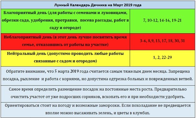 Podle lunárního kalendáře jsou pro pěstitele v březnu 2019 nepříznivé následující dny: