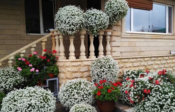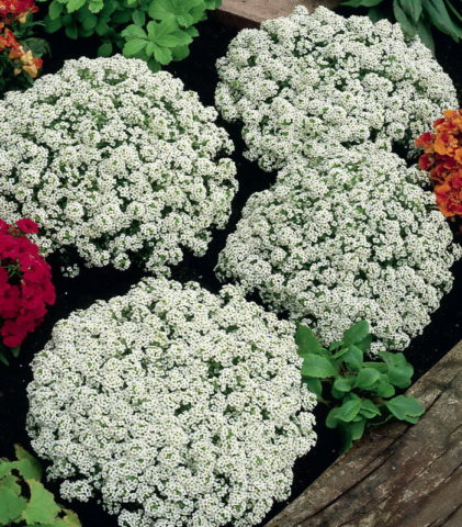 Alyssum Princess Snow lze použít také v kombinaci s jinými, jasnějšími květinami a okrasnými rostlinami.