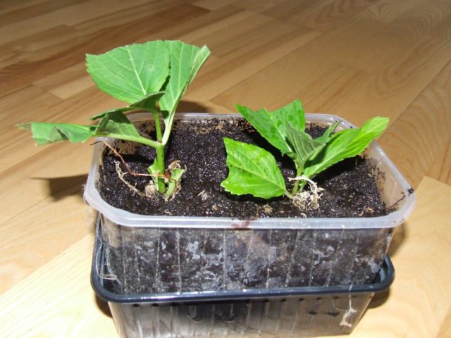 Listy řízků hortenzie Diamantino lze snížit na polovinu - tím se sníží ztráta vlhkosti při odpařování