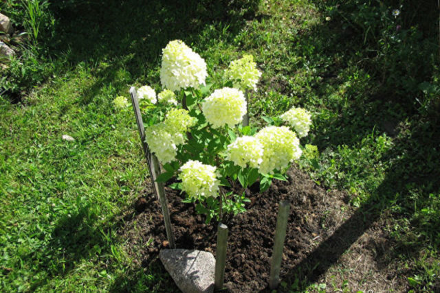 Při přípravě půdy se doporučuje okamžitě umístit komplexní minerální hnojiva do jámy, pomohou hortenzii rychleji zakořenit.