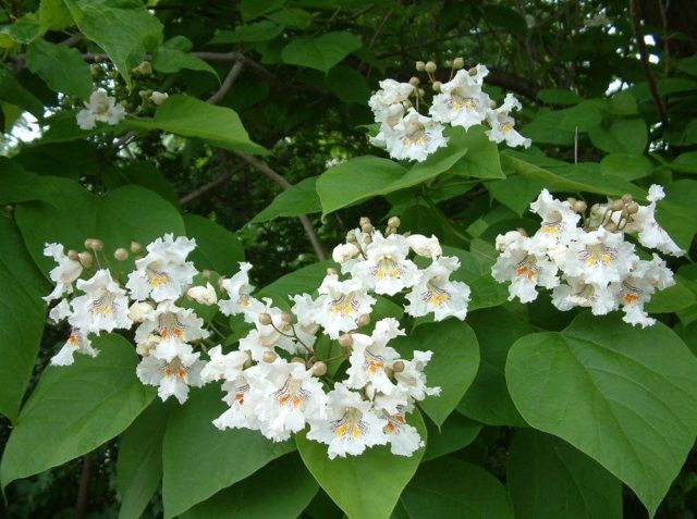 - Catalpa je krásná - jedna z nejvíce mrazuvzdorných odrůd, odolává chladu až do -40 stupňů. Jeho květy jsou o něco menší než u divokých teplomilných druhů, nicméně to nemá žádný vliv na velikost květenství a celkový dekorativní vzhled;