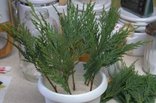 Řízky se sklízejí na jaře nebo počátkem léta. Jsou vyřezány z mladých výhonků dlouhých 15-18 cm, jehly jsou odstraněny z jejich spodní části a zasazeny do nádoby naplněné směsí vlhkého písku a rašeliny. Nádoba je pokryta fólií, která vytváří skleníkové mikroklima. Za takových podmínek se řízky zakořenily za 1-1,5 měsíce, poté se zasadí k pěstování ve velkých nádobách.
