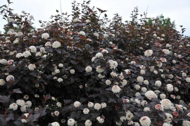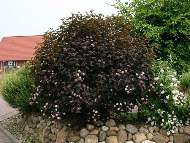 Díky velkým vzorovaným plechovým deskám tedy ve skupinových výsadbách vypadají velmi působivě. Bubliny v krajinném designu vypadají velmi atraktivně na pozadí rostlin kontrastních barev. Krásu těchto neobvyklých keřů obzvláště dobře zdůrazňují jehličnany. Odrůdy fialových listů příznivě zahajují thuju a nažloutlé smrky, zatímco žlutohnědé vezikuly jsou výhodněji kombinovány s rostlinami s modrými nebo zelenými jehlami.