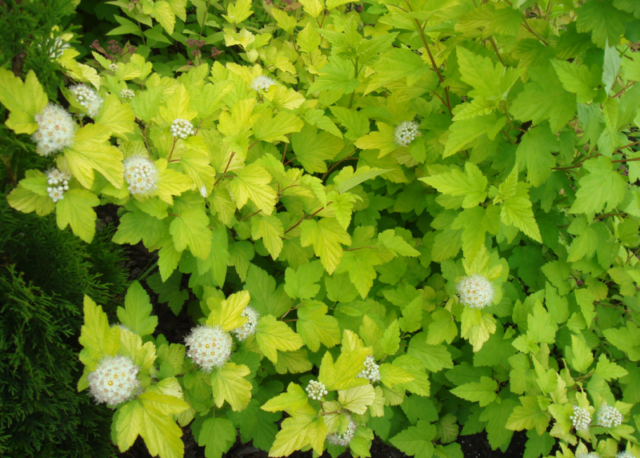 Další žlutolistá odrůda s charakteristickou limetkovou korunou. Tento keř je méně energický a je 1,5 m vysoký. Na rozdíl od předchozí odrůdy jsou květy této rostliny krémové.