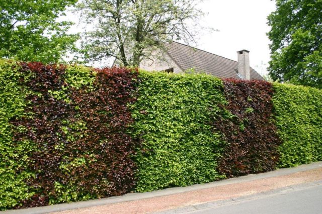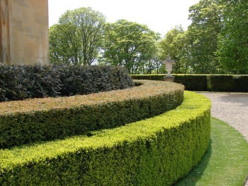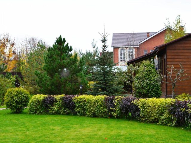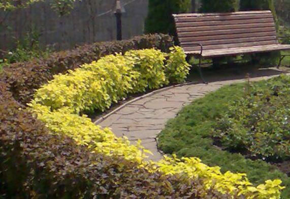 Pevné živé ploty v zahradní krajině jsou samy o sobě dobré, nicméně jim může být dána rozmanitost a struktura, pokud používáte několik odrůd žvýkačky různých barev, jak je znázorněno na fotografii níže. Takže odrůdy zlatozeleného Nuggetu a fialového hybridu Diable d'Or jsou navzájem v dokonalé harmonii. Lemon Dart's Gold a fialové Diabolo nevypadají o nic méně působivě. Jsou vysazeny ve dvou paralelních liniích nebo střídáním odrůd. V druhém případě jsou keře rozloženy a mezi rostlinami je ponechán prostor 40 - 45 cm.