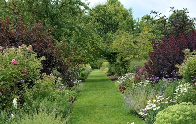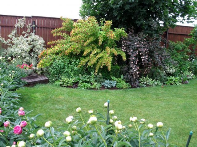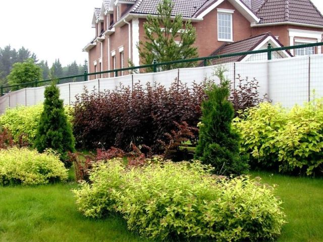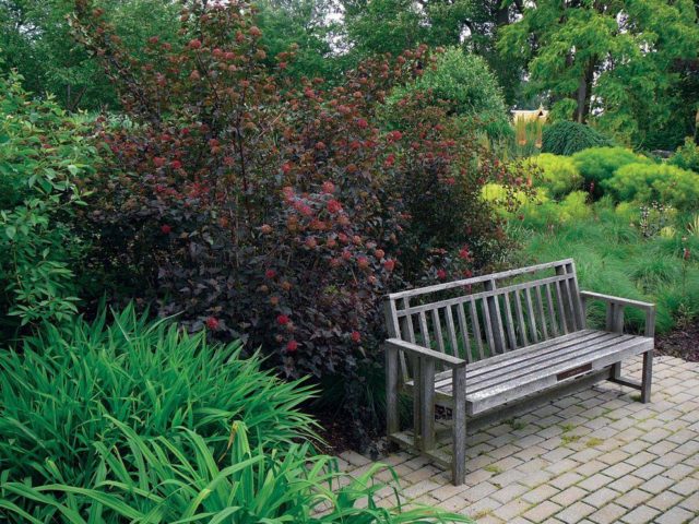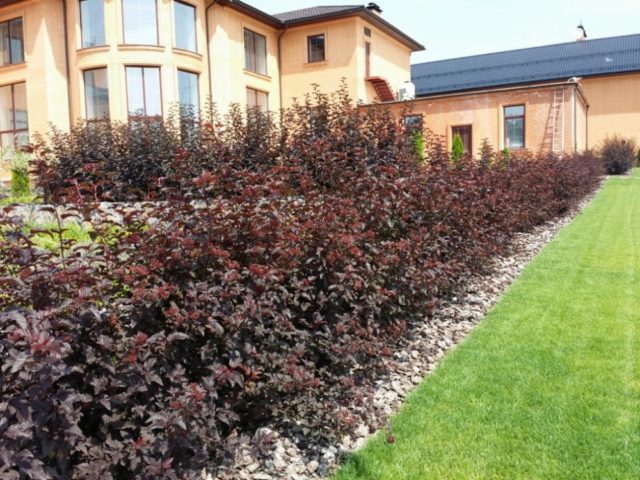 Úhledné malé živé ploty ze středně vysoké zahrady měchýře Viburnolia, jako je jantarové jantar, letní víno a Dart's Gold, jsou ideální pro vytváření přírodních plotů, které mohou oddělit hřiště od zahrady nebo terasy, aniž by došlo k porušení jednotného stylu krajiny.