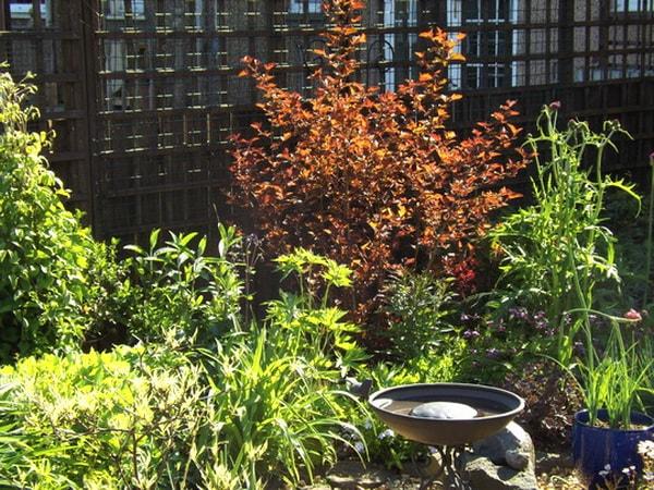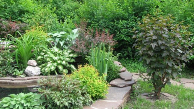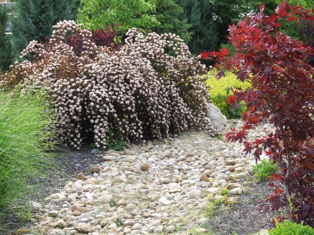 Popularita močového měchýře v krajinářském designu je vysvětlena také skutečností, že jeho fyzikální vlastnosti jsou v dokonalé harmonii s jinými rostlinami.