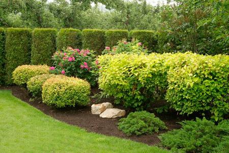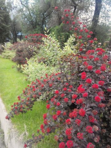 Bubliny v krajinném designu se také používají pro dvoustupňové výsadby. Pokud jsou spodní větve holé ve vysokých keřích, pak je v krátké vzdálenosti od nich vysazena nižší odrůda rostliny. Tato technika nejen skrývá nedostatek zelené hmoty, ale také vypadá velmi elegantně.