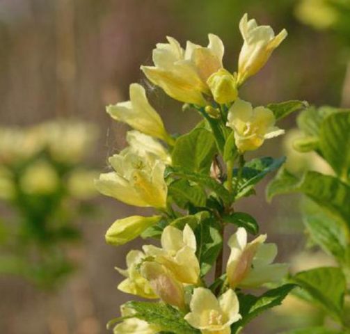 - Middendorf. Nízko rostoucí odrůda, dospělá weigela dosahuje 1,5 m. Liší se v době kvetení. Období trvá měsíc. Miluje vlhkou rašelinovou půdu. Květy jsou krémové nebo žluté, listy si zachovávají svoji barvu až do poloviny podzimu. Vyžaduje úkryt, jinak může keř trpět mrazem.