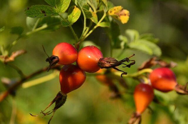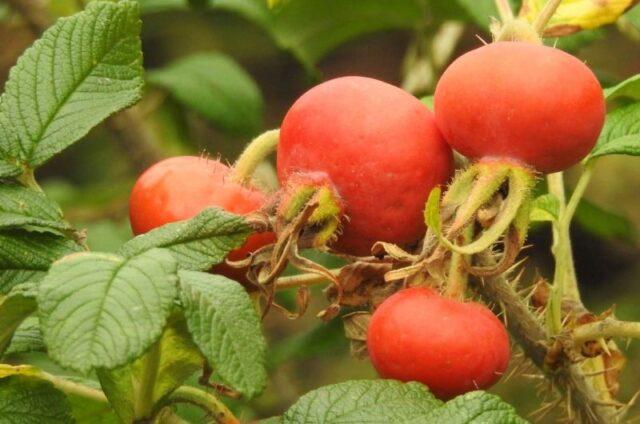 Rosehip Ruby je pokryta bohatými trny a vyžaduje pečlivou sklizeň