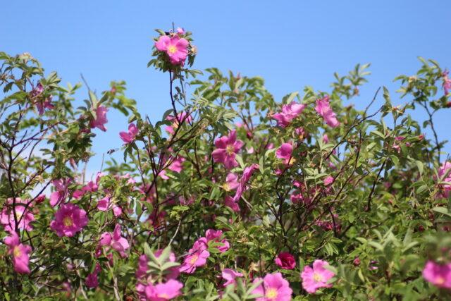 Vrásčitá šípka kvete uprostřed léta a na podzim může znovu kvést.