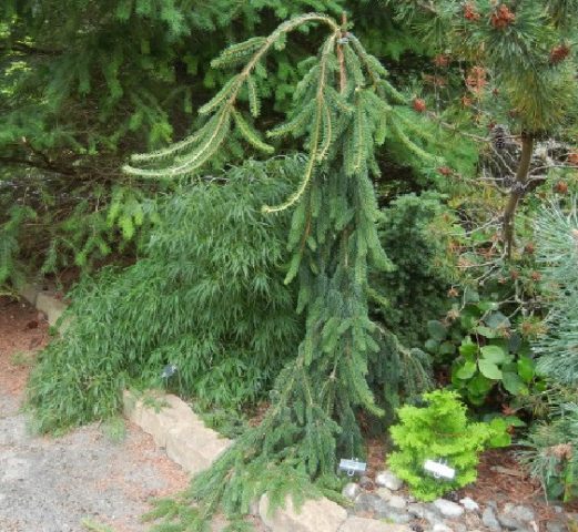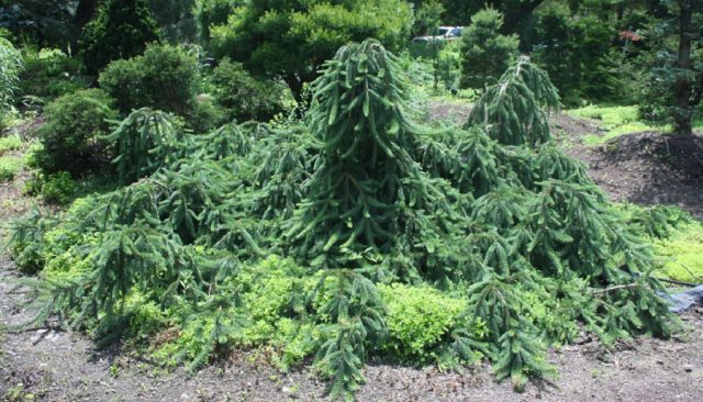 Obvykle mohou plačící odrůdy volně růst, ale kanadský smrk Pendula to nepotřebuje - ačkoli jeho větve visí dolů, přilnou k sobě docela těsně a nezasahují do jiných rostlin. Jeho tvar však silně závisí na tom, jak vysoko je štěp vyroben a jak byl svázán hlavní vodič.