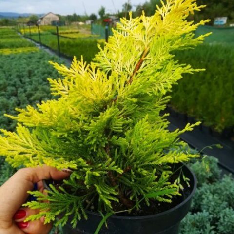 - Tuyu japonština vyznačuje se měkkými vícebarevnými jehlami: horní povrch jehel je zelený, zatímco na spodním jsou viditelné bílé skvrny. Japonská thuja je nenáročná na péči, má vysokou úroveň mrazuvzdornosti.