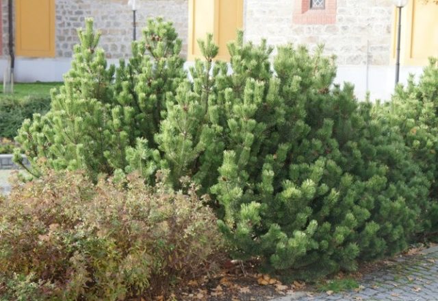 - Horská borovice - strom s výškou 1 - 1,5 m, zaoblená nebo oválná koruna má také vysokou úroveň zimní odolnosti a odolnosti proti suchu. Nenáročné na složení půdy zřídka podléhá chorobám a škůdcům. Nejlepší v kombinaci s výsadbou břízy, balkánské borovice nebo smrku;