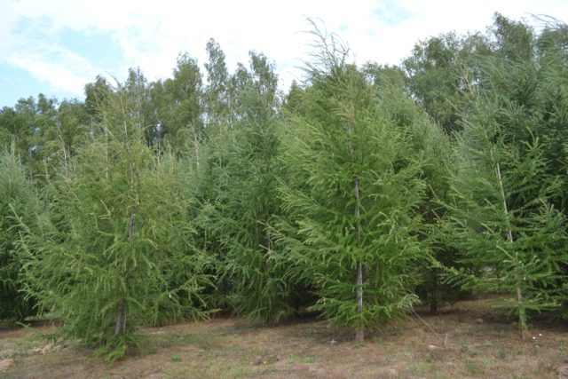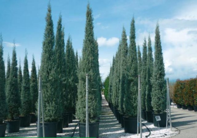 - Cypress Arizona - vysoká jehličnatá rostlina s rychlým růstem, modrými jehlami a hustými těžkými větvemi. Má významnou úroveň odolnosti proti silnému suchu a mrazu.