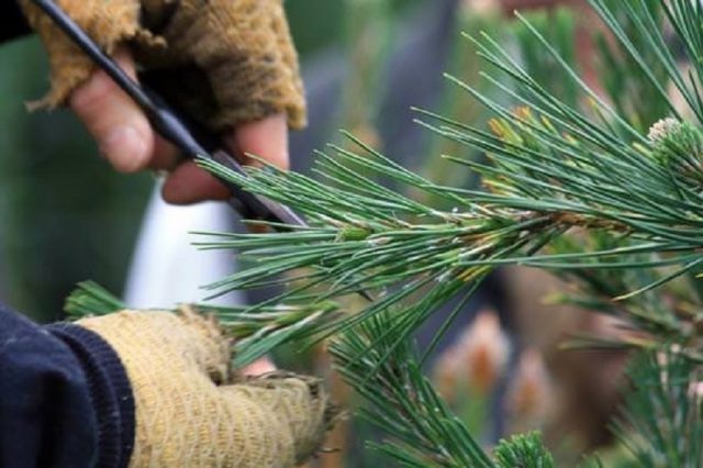 Prořezávání. Je zapotřebí pouze sanitární prořezávání. Pokud chce vlastník zkrátit borovici, je provedeno sevření porostu o 1/3 délky.