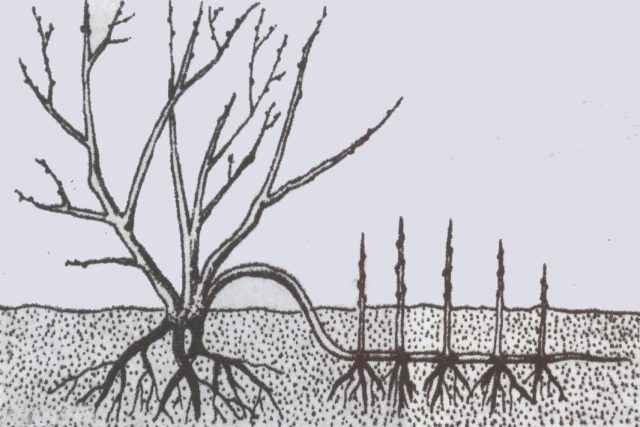 Šíření řízky je složitější metoda. Na začátku jara, před zlomením pupenu, se vyberou silné výhonky, které se nakrájejí na malé větvičky o délce 12 cm. Poté se pomocí nože očistí jeden okraj od kůry a řez se sníží na směs písku a rašeliny. Sazenice je pravidelně napojena. Teplota v místnosti by neměla klesnout pod + 20 ° C. Jakmile se klíček zakoření, během teplého období je zakořeněn v zemi.