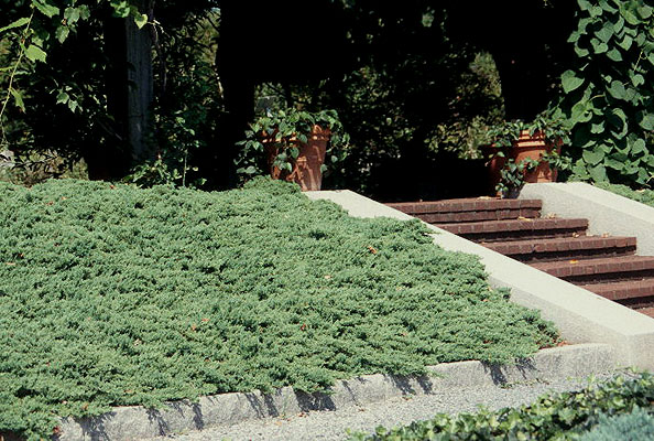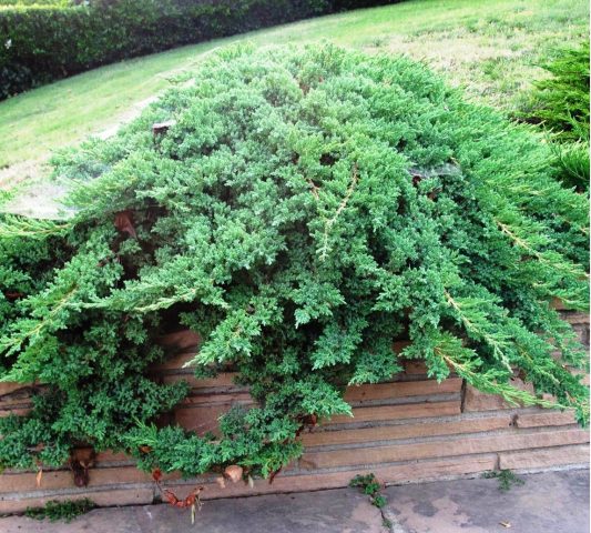 Jak vidíte na fotografii níže, ležící jalovec Nana se často používá k zdobení městských parků a dětských hřišť. Je to proto, že odrůda je docela odolná vůči znečištění ovzduší.