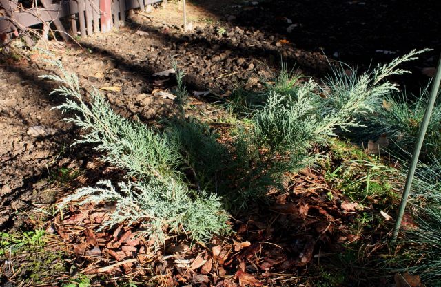 Půda poblíž kmene je ihned po výsadbě mulčována suchým listím, rašelinou nebo malou kůrou stromů. Na podzim se vrstva zvyšuje, na jaře se kompozice obnovuje. Uvolňování a odplevelení mladých sazenic jalovce se provádí v průběhu růstu plevele... Dospělá rostlina tuto zemědělskou techniku nepotřebuje, plevel neroste pod hustou korunou a mulčování brání zhutnění horní vrstvy půdy.