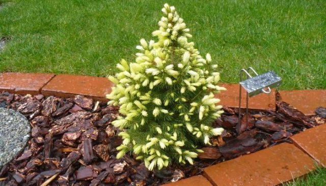 Ale Daisy White vypadá dobře v zahradách vyrobených v japonském nebo běžném francouzském stylu. Malý pestrý smrk bude vhodný při pravidelných výsadbách, například jako opakující se prvek při rámování parterového trávníku nebo v dlouhých úzkých hřebenech.