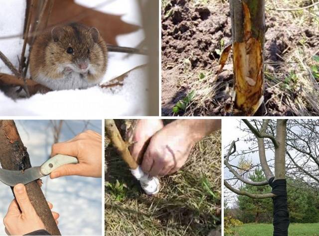 Pokud myši kously kůru jabloní, nejdůležitější věcí je neztrácet čas a okamžitě strom zachránit. Jakmile se sníh roztaje, měl by se zahradník projít po místě a zkontrolovat všechny ovocné rostliny. V závislosti na tom, jak moc myši kousaly kůru jabloní, je zvolen způsob záchrany a ošetření stromu.