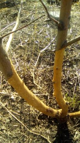 - Nabílení kmenů jabloní... Kmen a kosterní větve jsou pokryty zahradní barvou do výšky asi 150 cm (do této výšky dosahují zajíci stojící na zadních nohách).