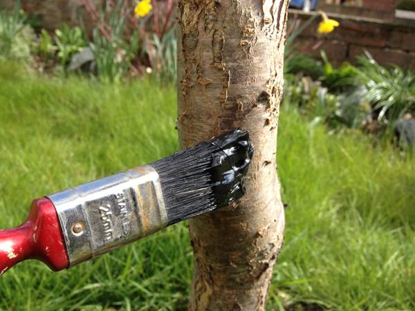 - jakmile se sníh roztaje, rána způsobená myšmi se vyčistí, aby se vyčistilo dřevo;