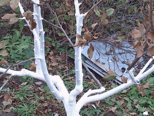 V obchodě si můžete koupit speciální vápno, které již obsahuje potřebné látky k boji proti chorobám a škůdcům, kteří žijí na kůře ovocných stromů.