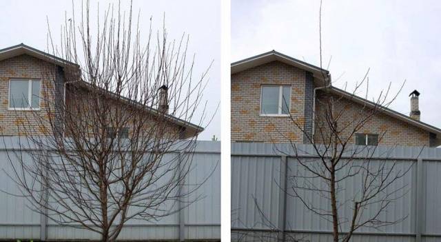 - na stromech s pyramidovou korunou (například hrušky) je nutné snížit všechny rostoucí výhonky dolů, to znamená odstranit větve, které dorůstají;