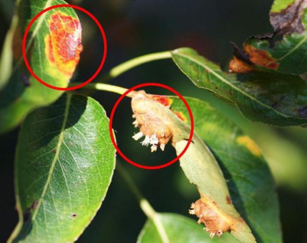 Vývoj spor vede ke smrti listů, ovocný strom oslabuje, protože je narušena vodní bilance. Hruška nebude mít dobré ovoce po dobu 2 let.