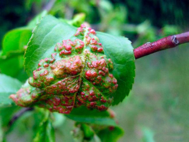 - Listy mohou být poškozeny plísní. Vizuálně se na listu objeví vyboulení bodů a na jejich místě se objeví díry a perforované skvrny. Bush je ošetřen přípravky obsahujícími měď, například "Hom". Z preventivních důvodů se kmen a větve na jaře bělí vápnem síranem měďnatým: 1: 2.