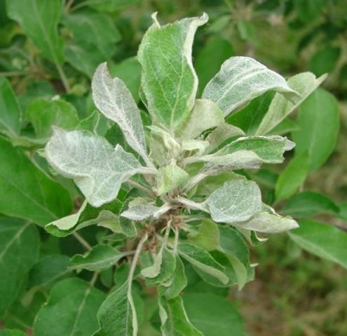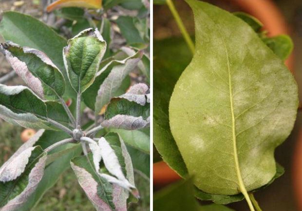 V obou případech mění vegetativní orgány barvu na světle šedou s mléčným odstínem. U listů postižených houbovým onemocněním je tato barva vysvětlena pronikáním mycelia do tkáně. Pokud odříznete infikovanou větev, dřevo bude hnědé. Na podzim se vytvoří plodnice houby, podobné kožovitým výrůstkům do velikosti 3 cm a připojeným k nemocným větvím.