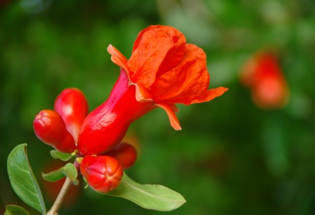 Další výhodou šíření vnitřního granátového jablka řízky je to, že na takové rostlině se dříve objevují květiny a plody.