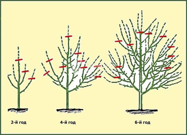 Horní větve na koruně stromu musí být staré 3-4 roky.Pokud jednoroční natáčení končí generativním pupenem, je oříznuto. Odstraňují také roční výhonky, které končí pupenem, ale po celý rok nenarostly déle než 20 cm. Obvykle rostou špatně a špatně sklízejí.
