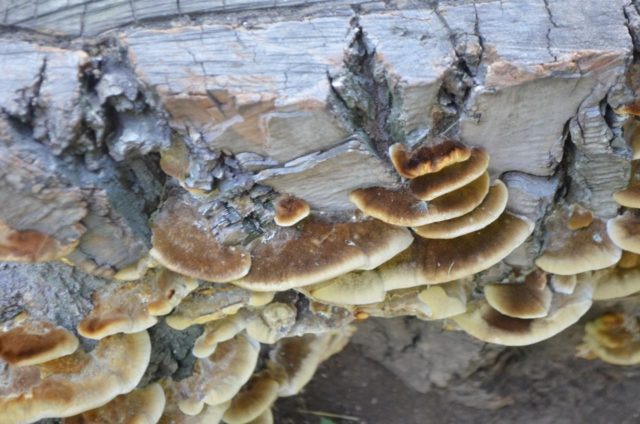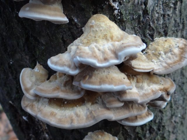 Na stromě může být několik houbových čepic, které společně vyrostou do jedné celkové hmoty
